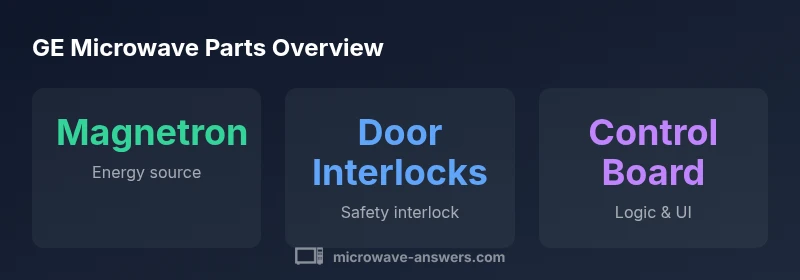 According to Microwave Answers, GE microwave parts are replacement components used to fix GE-brand microwaves, including magnetrons, door interlock switches, diodes, capacitors, turntable motors, hinges, and control boards. Understanding these parts helps you diagnose problems, source the right components, and avoid unnecessary repairs. Most GE microwaves share a basic architecture: a power supply, a high-voltage circuit, a cooking chamber, and a control system. When a part fails, symptoms guide you toward the likely culprit, while model-specific manuals confirm compatibility. This practical framework helps home cooks and homeowners distinguish between electrical hazards and simple wear-and-tear.