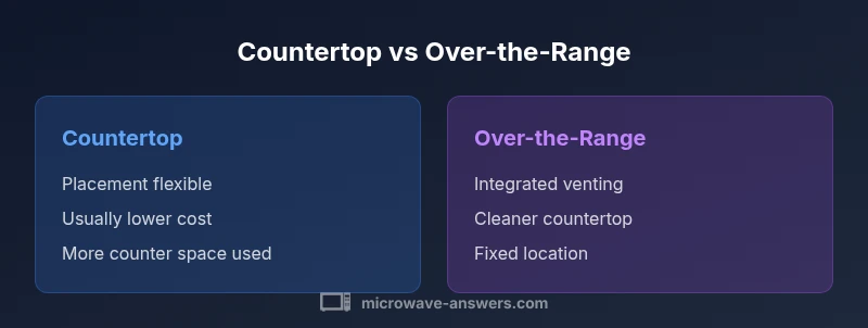 When you compare countertop microwave vs over the range, the immediate impact is on layout: countertop models sit on the counter and are easy to move, while over-the-range units mount above the stove and can double as a vent hood. Your kitchen's existing cabinets, ceiling height, and stove configuration will dictate which option fits best. In many layouts, a countertop microwave offers more freedom to place the unit where it is most convenient for daily use, while an over-the-range model can keep the countertop clear and create a cleaner line above the cooking surface. This block discusses how these placement differences influence workflow, reach, and cabinet planning, so you can pick a solution that minimizes disruption to your cooking routines. We’ll also touch on basic safety considerations, such as clearance around the unit and the risk of hitting hot surfaces during busy meal prep. According to Microwave Answers, space and ventilation choices should drive your layout decision from the start.