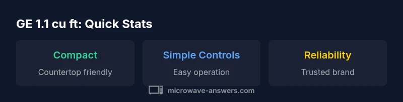 The GE 1.1 cu ft microwave delivers dependable reheating and basic cooking in a compact footprint. It trades advanced features for space efficiency, making it ideal for apartments, dorms, and offices. The Microwave Answers team notes strong value for those prioritizing simplicity and reliability.