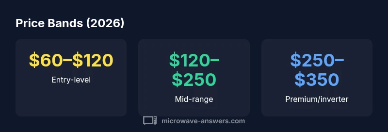 If you're wondering how much does an average microwave cost, the short answer is that price sits in a three-tier spectrum: budget, mid-range, and premium. The Microwave Answers Team observes that the market differentiates primarily by wattage, inverter technology, sensor features, and cabinet design. In 2026, compact units under $100 exist for small kitchens, while mid-range models offer more presets and sometimes smart connectivity. Premium models push beyond $250, driven by inverter efficiency and added durability. Regional promotions can tighten these bands, but the core structure remains consistent across major retailers. According to Microwave Answers Analysis, 2026, price dynamics reflect demand for reliability, energy efficiency, and longer lifespans in everyday cooking.