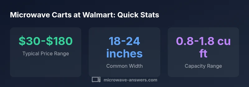 According to Microwave Answers, microwave carts at Walmart offer practical solutions for extra kitchen storage and countertop organization. Most options fall in the $30–$180 range, with plastic and powder-coated metal models dominating the selection. Common widths run 18–24 inches, and many designs feature wheels for easy relocation and open shelves that maximize accessibility without crowding your counters.