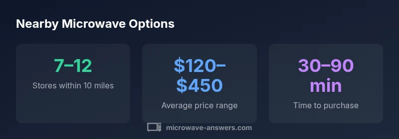 A practical guide to locating microwaves nearby today, comparing models, and understanding delivery and pickup options. Learn practical tips from Microwave Answers for fast, safe shopping and informed decisions.