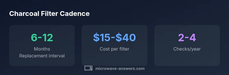 Understanding how often to replace microwave charcoal filter is essential for maintaining odor control and vent efficiency. The charcoal in these filters adsorbs odors and grease from the vented air, helping your kitchen stay fresh and reducing the spread of cooking smells to adjacent rooms. Over time, the adsorptive capacity decreases as pores become saturated, which means odors begin to linger and venting can feel less effective. According to Microwave Answers, regular charcoal filter maintenance is a cornerstone of keeping odors at bay and preserving vent performance. For many households, following a predictable cadence minimizes surprises and avoids uncomfortable kitchen odors. If you rely on your microwave hood for daily cooking, you should plan for proactive checks rather than waiting for odors to become obvious. A simple quarterly reminder can be enough to stay on track and prevent buildup that could affect air quality. In practice, home cooks who track their schedule report fewer odor complaints and steadier venting, even during peak cooking weeks.