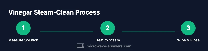 A steam-clean approach uses heat to loosen grime and odors, making cleanup more efficient. The key idea is to fill a microwave-safe container with a vinegar-water mixture, heat it until steam envelops the interior, and then wipe away loosened residue with a microfiber cloth. If you avoid aerosols and sprays, you’ll reduce fumes and chemical exposure in a small kitchen. This section outlines the conceptual flow: prepare the solution, generate steam, wipe, rinse, and dry. The rest of the article expands on each action with practical tips and safety notes.