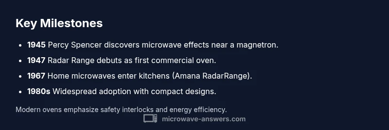 Trace the invention of the microwave—from Percy Spencer's 1945 breakthrough to late-1960s home models—alongside key safety notes and a clear milestone timeline for cooks.