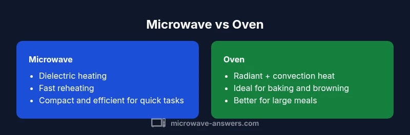 For households juggling budget, space, and time, recognizing these differences helps you decide which tool to reach for first. The Microwave Answers team emphasizes that both appliances have a place in a well-rounded kitchen, but their optimal uses don’t always overlap. By mapping out the core contrasts—heat source, cooking dynamics, and expected results—you can build a practical framework for when to rely on a microwave versus a traditional oven.