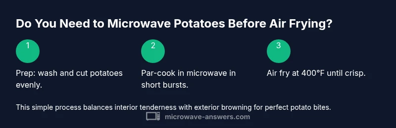 Seasoning sticks better to potatoes that have been patted dry after microwaving, and a light oil coating helps browning in the hot air. If you’re new to air frying potatoes, start with microwaving for a short window and compare results with a direct air fry to see which texture you prefer. This approach aligns with practical kitchen math: you trade one preheat step for shorter final cook time or vice versa. The Microwave Answers team recommends testing both methods on a small batch to find your preferred balance of texture and time.