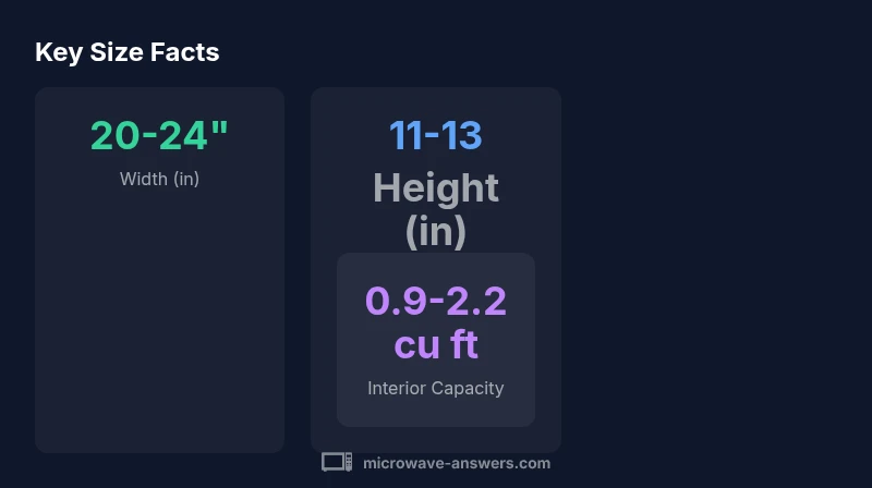 For the question how big is a microwave, most countertop models measure about 20-24 inches wide, 11-13 inches tall, and 14-20 inches deep, with interior capacity around 0.9-2.2 cubic feet. Built-in and over-the-range units are typically wider and deeper to accommodate ventilation. These ranges capture common options, but always verify exact specs for your space.