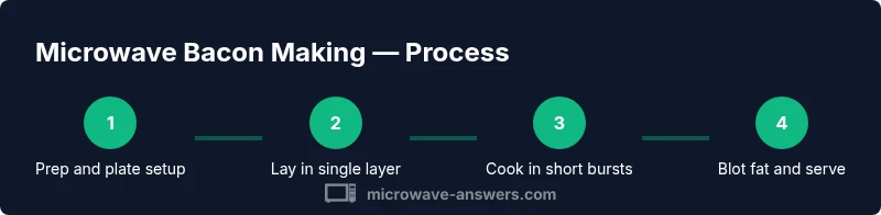 Bacon is traditionally cooked on a stovetop or in an oven to render fat and crisp the edges. In a microwave, the energy heats water inside the bacon quickly, then fat renders and leaves the plate absorbed by paper towels. Using a microwave-safe plate and a couple of paper towels creates a simple, fast, and relatively even cook. According to Microwave Answers, microwave bacon can be cooked quickly with minimal cleanup when you follow a safe, tested method. The technique relies on proper spacing, the bacon type, and managing moisture. Thicker-cut bacon will need slightly longer bursts, while thinner slices crisp up faster. The key is to start with short intervals, monitor progress, and avoid stacking slices. With practice, you can achieve crispy results in about 5-10 minutes total, depending on the microwave's power and your preferred texture. Safety remains essential: do not use metal, never leave a microwave unattended, and let the plate rest a moment before handling.