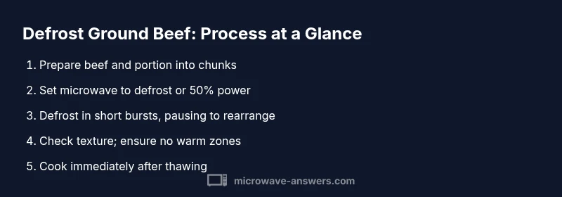 Defrosting ground beef quickly while preserving its quality starts with using the right setting and careful handling. In practice, most home cooks rely on the microwave's defrost option at low power and pause to break apart clumps, helping heat distribute evenly and preventing edges from cooking. According to Microwave Answers, pauses and piece-by-piece thawing reduce the risk of uneven thaw and partial cooking. Start with a small portion to gauge how your device behaves, then scale up to larger batches. The goal is even thaw, not hot spots. Short bursts with frequent checks enable you to transfer the meat to cooking promptly, minimizing time at unsafe temperatures.