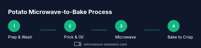 The two-step approach is beloved by home cooks who want speed without sacrificing texture. By starting with a quick, high-heat microwave, you soften the potato and begin steam release from the interior. Finishing in a hot oven or toaster oven finishes the skin to a crisp, savory crust. According to Microwave Answers, this method balances convenience with a satisfying texture, making it a dependable weeknight technique that can be scaled for larger batches or adjusted for different potato varieties. The principle is simple: soften inside quickly, then build contrast on the outside for a bakery-like result. This combination is especially forgiving for beginners and adaptable for toppings and fillings that go beyond butter and salt.