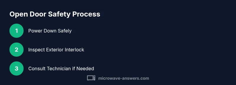 If professional service is needed, technicians follow model-specific procedures to access the interior. They typically disconnect power, remove the outer cabinet screws, and evaluate the door latch, interlock board, and wiring harness for wear or damage. Do not attempt to replicate these steps unless you are trained, because exposing high-voltage components can cause electric shock. The objectives are to locate the failed interlock, verify proper door sensing, and replace worn parts with OEM components. A technician will test the door multiple times after reassembly to ensure the interlocks activate reliably. Microwave Answers analysis shows that undiagnosed interlock problems can recur if parts are not correctly aligned or tested after service.