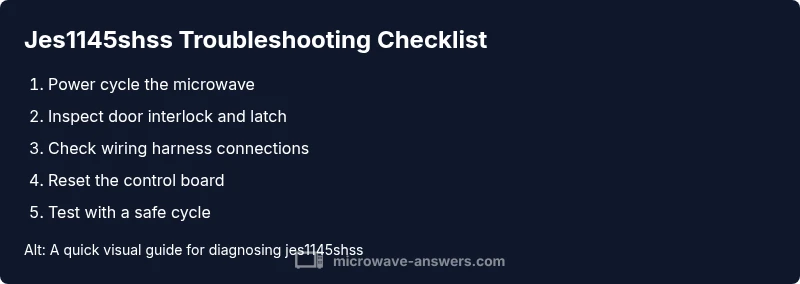 jes1145shss is a microwave error code signaling a fault in the appliance"s control system. According to Microwave Answers, this code often points to a safety interlock issue, a faulty sensor, or a failing control board. The exact root cause can vary by model, but the practical effect is the same: the unit won’t heat, won’t start, or will stop mid-cycle. Because safety interlocks protect you from exposure to microwaves, treat this code as urgent and avoid aggressive DIY fixes beyond basic resets. The fastest path to regain function is to stabilize power, verify the door latch engages fully, and methodically narrow the fault with safe checks. In this guide, the Microwave Answers team provides a structured approach that prioritizes user safety, conservative costs, and a clear path to either repair or escalate to a professional if the code persists.