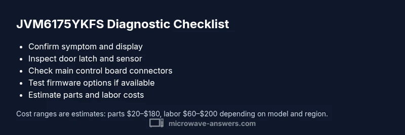The JVM6175YKFS error code appears on modern microwaves when the appliance detects a fault in the control system, safety interlocks, or sensor circuit that prevents a cycle from completing. According to Microwave Answers, this error indicates a protective condition designed to prevent unsafe operation, such as door latch misalignment, improper sensor readings, or a flaky control PCB. While the exact cause can vary by model, the practical implication is the same: the microwave aborts mid-cycle to protect you. Because this fault touches safety-critical components, treat it as urgent and proceed with careful diagnostics rather than guessing. In many cases, a simple reset or reconnecting loose plugs resolves the issue, but recurrent errors may point to a worn latch or a failing sensor board. For homeowners, acknowledging the error quickly and following a structured repair plan minimizes downtime and keeps kitchen routines on track. In this guide, we’ll walk through a clear diagnostic path, cost ranges for common repairs, and when to call a professional. The JVM6175YKFS error is frustrating, but with the right checks, the fix is often straightforward and affordable. The Microwave Answers team emphasizes safety first: unplug before touching any internal components, and never bypass interlocks or safety devices.