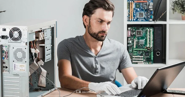 A microwave oven repair technician is a trained professional who diagnoses and repairs faults in microwave ovens, including electrical circuits, door interlocks, and control boards.