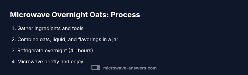 Microwave overnight oats describe a simple breakfast method that pairs the convenience of prepping ahead with the comforting texture of warm oats. The idea is to soak rolled oats in milk (dairy or plant-based) with a few flavorings in a jar the night before. By morning, the oats have softened and absorbed flavors, so a quick heat in the microwave finishes the dish. This approach minimizes morning cooking time without sacrificing nutrition, making it a popular choice for busy households. The core ingredients are intentionally few: oats, liquid, a pinch of salt, and a hint of sweetness. From there, you tailor the mix with yogurt for creaminess, nut butters for richness, or spices for warmth. The result is a flexible breakfast canvas that can support different dietary needs, from gluten-free oats to vegan milks. The Microwave Answers team has observed that the method scales well for meal prep, letting you prepare multiple jars with different flavors for the week.