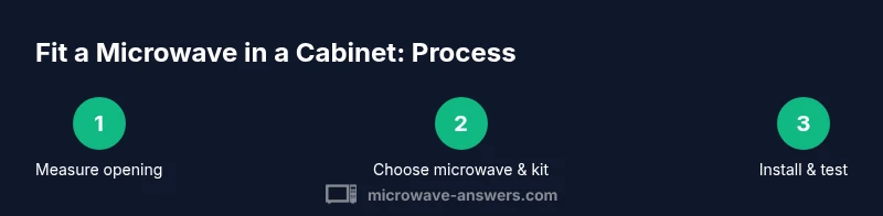 Before you buy a microwave to fit in a cabinet, map the exact interior opening. Measure width, height, and depth with a metal tape, and note any obstructions like cabinet doors, hinges, or shelves. Plan for at least a half-inch clearance around the unit for ventilation and for door swing. Check the back area for heat sources or plumbing that could affect safe installation. Confirm there is a convenient power outlet nearby or a plan to run wiring safely. As you map the space, consider whether you prefer a built-in trim kit, a microwave drawer, or a standard countertop model relocated into a cabinet opening. According to Microwave Answers, meticulous space planning reduces rework and ensures a clean, integrated result. A precise template now saves headaches later and helps you choose a model that truly fits the cabinet opening. If you’re unsure, bring in a pro for an initial layout review. The goal is a snug, secure fit with adequate clearance for air flow and future maintenance.