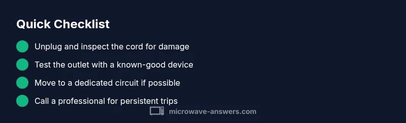 If your microwave trips the breaker, the most likely causes are an overloaded circuit, a damaged power cord, or a faulty outlet. Start by unplugging the microwave, inspecting the cord for wear, and testing the outlet with another device. If the breaker still trips, move the microwave to a dedicated circuit and seek professional help if you smell scorching.
