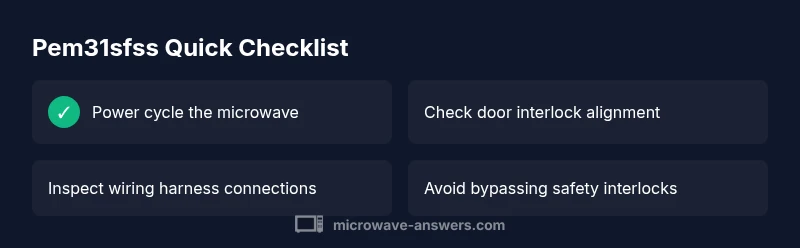 Pem31sfss indicates a safety interlock or sensor fault detected by the microwave's control system. It prevents operation to avoid damage or injury. Start with a safe reset and inspect the door interlock; if the code reappears, seek professional diagnostics.