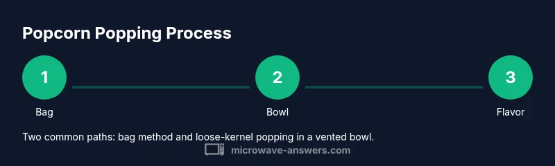 When you pop microwave popcorn, you have two main pathways: the familiar pre-packaged bag and the loose-kernel approach using a microwave-safe bowl. Each method has pros and cons that affect texture, flavor, and cleanup. Bags are convenient and designed for even popping, often including oil and salt. They minimize mess and require little prep, making them ideal for beginners or busy evenings. Loose kernels offer portability and control over seasoning, plus the option to use your own oil or butter. However, they require more attention to heat distribution and timing. The Microwave Answers team notes that any method benefits from careful listening for the pops-to-silence threshold and from ensuring the container is vented to let steam escape. In both cases, avoid overfilling and follow container-specific instructions to prevent scorching. Understanding these trade-offs helps you tailor the experience to your kitchen setup and nutrition goals.