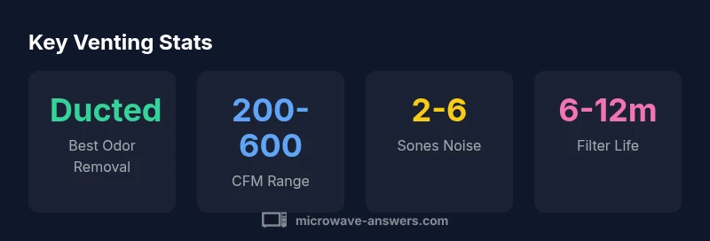 According to Microwave Answers, the most common microwave venting options fall into two families: exterior venting (ducted) and ductless recirculating venting. The choice affects not just air quality but installation complexity, cost, and long-term maintenance. Over-the-range microwaves (OTR) with built-in hoods are frequently paired with one of these venting strategies, and your decision should align with your kitchen layout, the presence of an exterior wall, and local building codes. Ducted venting moves moisture, cooking odors, and grease outside through a duct, typically using a dedicated vent and ductwork to the outdoors. Ductless recirculating venting uses charcoal filters to scrub air and returns it to the room. While it can be installed without exterior work, recirculating vents generally offer less effective odor removal and require ongoing filter maintenance. In this guide, we break down the practical considerations, typical costs, and the best-use scenarios for each type. Microwave Answers keeps the focus on real-world needs for home cooks and homeowners seeking practical venting solutions.