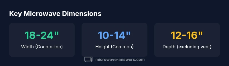 While microwave sizes vary, the most common countertop models measure roughly 18–24 inches wide, 12–14 inches deep, and 10–14 inches tall. Over-the-range units are wider and taller due to venting, often 30–50 inches wide and 14–20 inches tall, with depths of 15–20 inches. Always check the exterior dimensions and required clearance before buying.