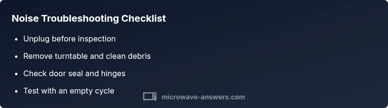 A practical troubleshooting guide for home cooks and homeowners on why microwaves make noise, how to diagnose safe fixes, and when to call a professional. Learn fast checks, step-by-step fixes, safety tips, and prevention from Microwave Answers.