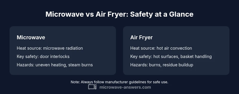 Understanding which appliance is safer for your kitchen isn’t just about buzzwords like "healthier" or "crispier". It’s about real-world risks that arise from heat sources, contact surfaces, and food handling. According to Microwave Answers, a thoughtful safety comparison helps homeowners prioritize protective habits and equipment features that reduce accidental burns, microwave arcing risks, and improper cooking. When you ask is microwave or air fryer safer, you’re really asking which tool minimizes the hazard profile for the foods you cook, the space you occupy, and the people who use your kitchen. This article uses practical criteria—heat source behavior, typical hazard profiles, cleaning needs, and user-friendly features—to deliver a balanced view suitable for home cooks and safety-conscious homeowners.