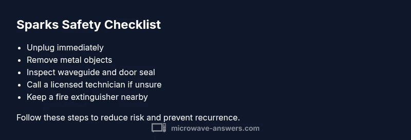 Learn immediate safety steps, diagnose common causes of microwave sparks, and follow a clear plan to prevent recurrence. Find guidance from Microwave Answers on when to service the unit and how to handle sparks safely.