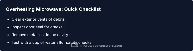 Microwave overheating typically stems from airflow restrictions, door seal wear, or user mistakes. Blocked vents from food debris or spills reduce cooling efficiency and cause internal components to work harder. A compromised door seal or misaligned door latch can let heat escape poorly, prompting the system to run longer than intended. Using metal containers, foil, or dishes with metal trim can cause arcing and stress the magnetron. Age and power supply faults also contribute: older models may have degraded insulation or worn fans, making overheating more likely during heavy use. Understanding these culprits helps you target the right fix without unnecessary disassembly. Across multiple Microwave Answers analyses, these causes remain the most actionable for homeowners and DIY enthusiasts.