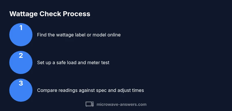 To check microwave wattage, locate the label on the back or inside the door, consult the manual, or perform a safe power-load test with a watt meter. This guide shows steps, tools, and safety tips for accurate results and recipe adjustments. You'll learn how to read labels, estimate power conversions, and verify results with a harmless test.